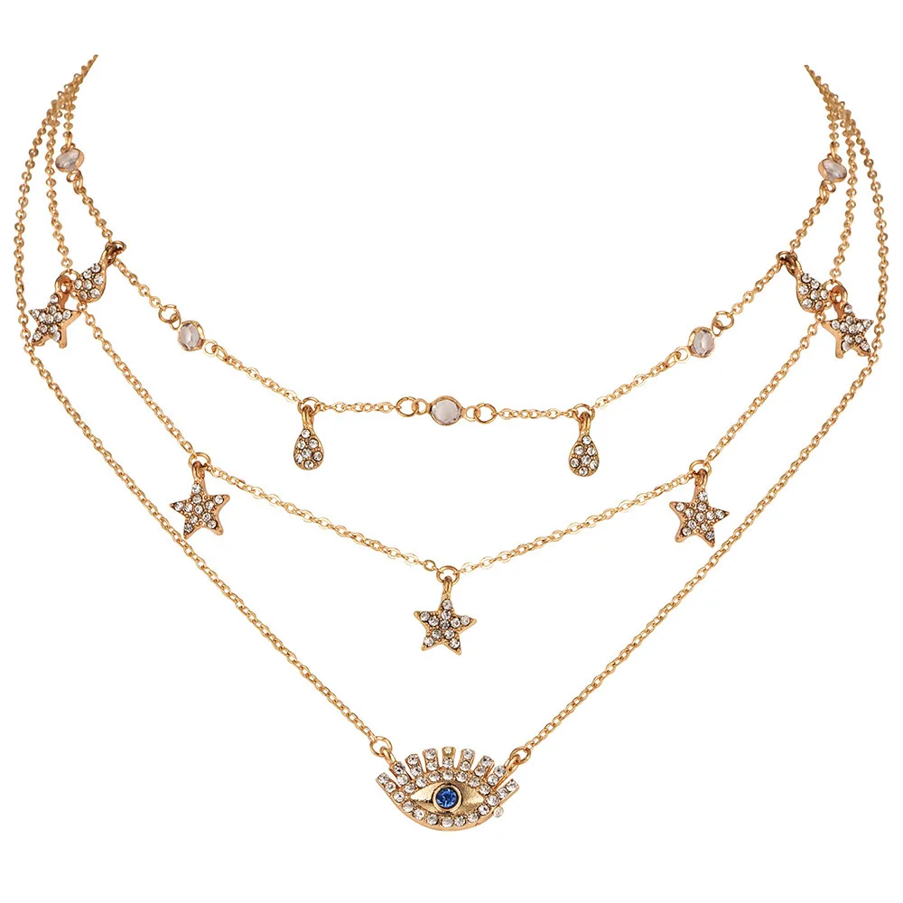 victoria’svogue Bohemian Star Moon Cross Heart Pendant Necklace For Women Gold Multi Layer Long Necklaces 2021 Fashion Jewelry Gift