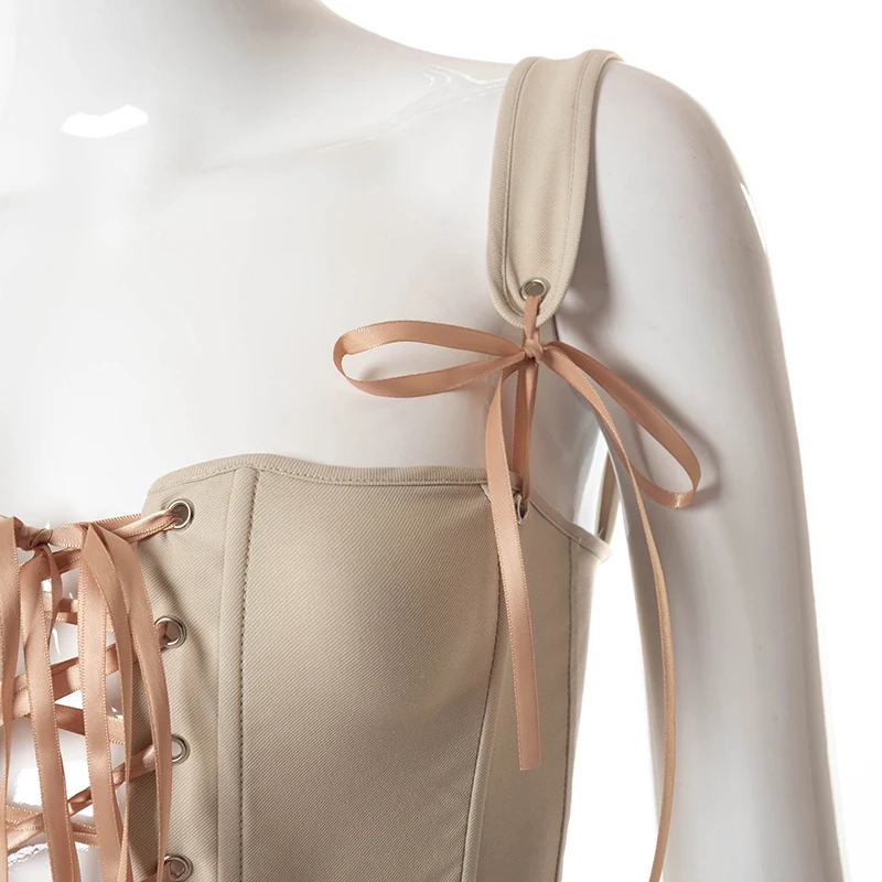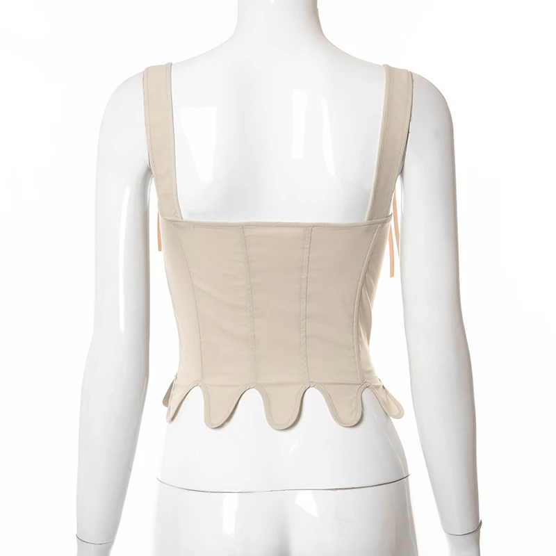 Victoriasvogue 2021 Solid Irregularity Patchwork Sleeveless Backless Lace Up Y2K Corset Tops Summer Women Sexy Back To The Basics Tops