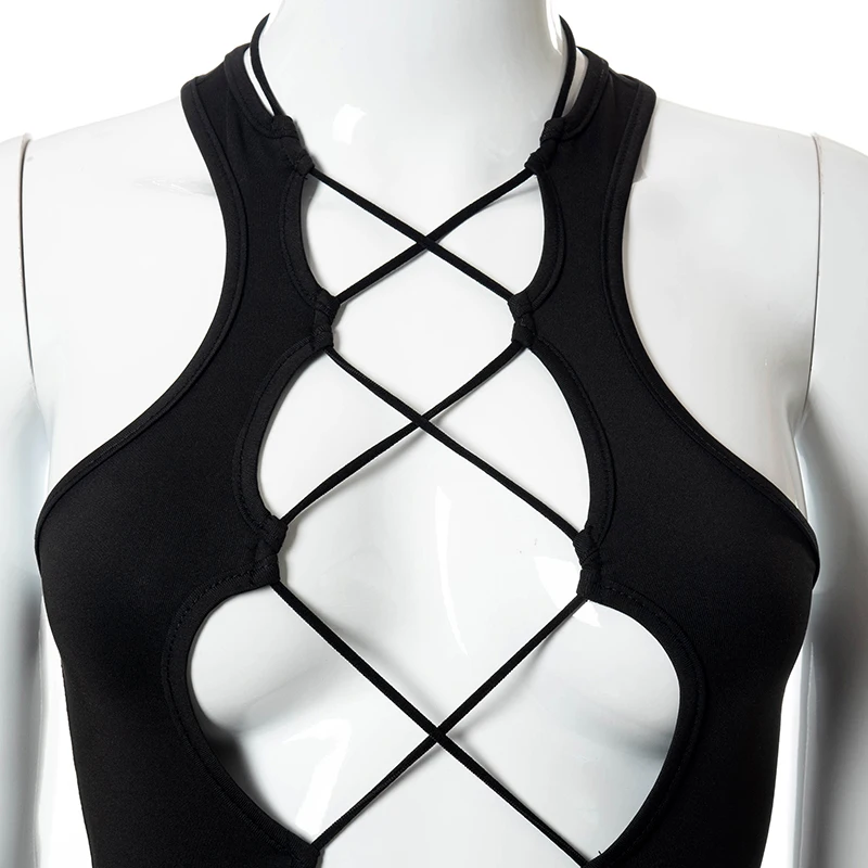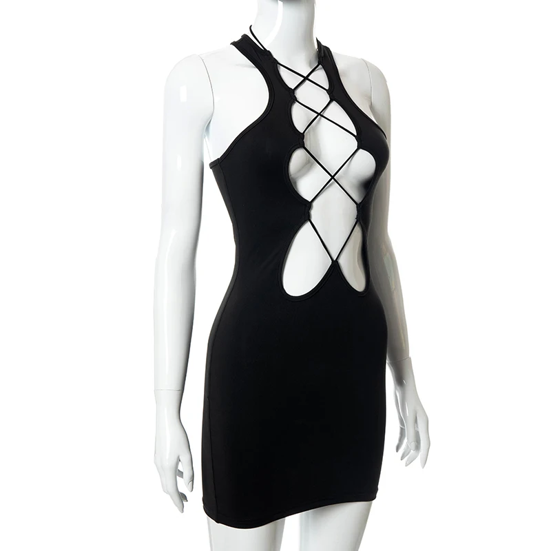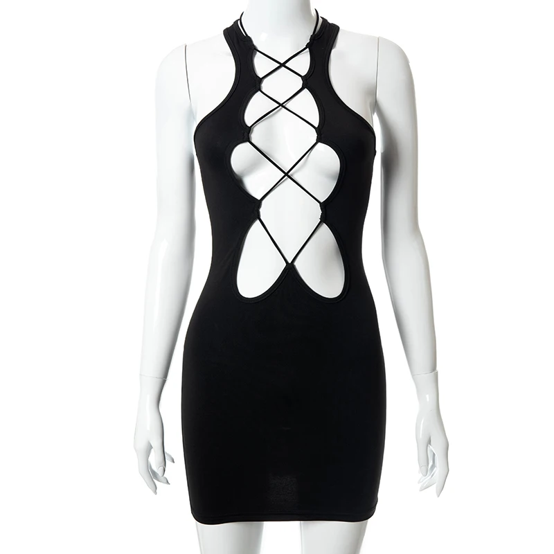 victoria’s vogue Sexy Party Club Bodycon Dresses For Women’s 2022 Summer Clothing Sleeveless Lace Up Mixi Dress Female Streetwears