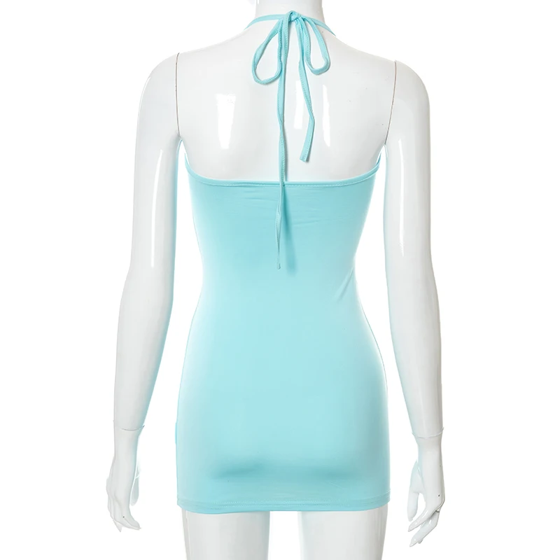 victoria’s vogue Sexy Party Club Bodycon Dresses For Women’s 2022 Summer Clothing Halter Patchwork Backless Dress Female Streetwears