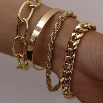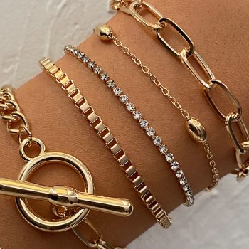Victoria’s Vogue 5 Pcs/Set Punk Gold Crystal Thick Chain Bracelet Female Bohemian Geometric Chain OT Buckle Bracelet Set Jewelry Girl Party Gift