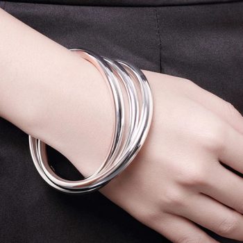 Victoria’s Vogue 925 Sterling Silver Bracelet Bangles Women Three Lines Smooth High Quality Solid Bracelet Bangles Fashion Jewelry