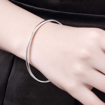 Victoria’s Vogue 925 Sterling Solid Silver Bracelet Fashion Personality Simple Smooth Bangles For Women Wedding Engagement Jewelry