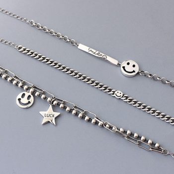 victori’s vogue 925 Sterling Silver Trendy Bracelet for Women Vintage Handmade Smiling Face Bracelets Fine Jewelry Birthday Gifts