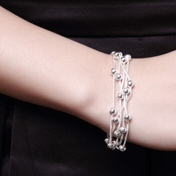 victoria’s vogue 925 Sterling Silver Five Snake Chain Bracelet Smooth Bead Silver Bracelet Fashion Women Wedding Engagement Jewelry