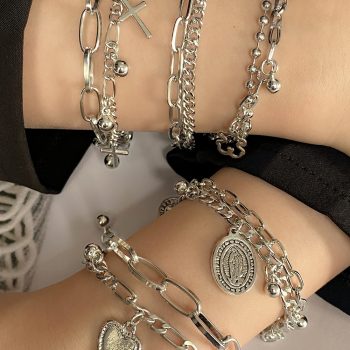 Victoria’s Vogue New Fashion Stainless Steel Chain Bracelet For Women Heart Cross Butterfly Pendant Bangles Party Jewelry Accessories Gifts