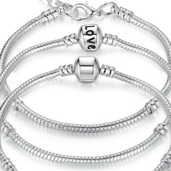 victoria’s vogue 5 Style Silver Color LOVE Snake Chain Bracelet & Bangle 16CM-21CM Pulseras Lobster