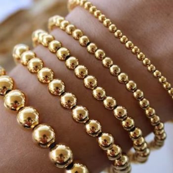 Victoria’s Vogue Trend Stretch Stainless Steel Bracelets Gold Sliver Color 2MM 5MM 8MM Stacked Ball Beaded Bracelet For Women Men Jewelry