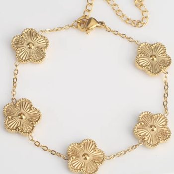 victoria’svogue Hot Sale Stainless Steel Laser Five Leaf Flower Petal Adjustable Clover Bracelet Classic for Woman Girl Brand Jewelry Party Gift