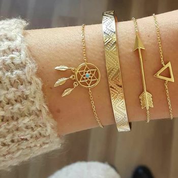 Victoria’s Vogue Vintage Geometric Six-pointed Star Feather Arrow Adjustable Bracelet Set For Women Boho Gold Bracelets & Bangles Fashion Jewelry