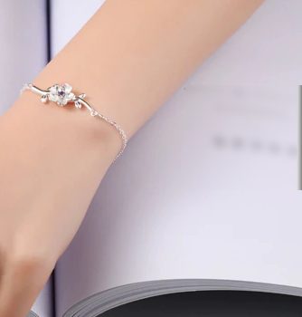 Victoria’s Vogue New Fashion Peach Branch Cute Literary Fresh Flowers 925 Sterling Silver Jewelry Cherry Blossom Women Bracelets