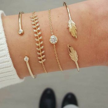 Victoria’s Vogue Boho Metal Gold Bracelets & Bangles For Women Vintage Multi-shape Leaf Crystal Adjustable Bracelet Set Female Fashion Jewelry