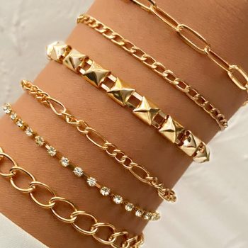 victoria’s vogue Boho Thick Gold Color Charm Bracelets Bangles 2022 New Fashion Jewelry Punk Curb Cuban Chain Bracelets Set for Women Gifts