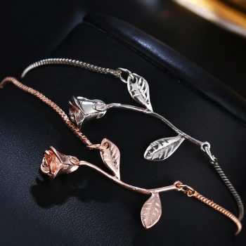 victoria’s vogue Fashion Rose Flower Charm Bracelet For Women Girl Bracelet Bangle Adjustable Wedding Bridal Jewelry New