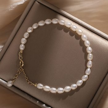 Victoria’s Vogue Basic Pearl Bracelet 5-6mm Adjustable Bracelet Rice Shape Good Quality Real Freshwater Pearl Jewelry for Women
