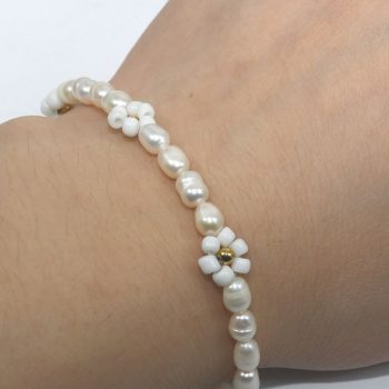 Victoria’s Vogue Women Flower Bridal Bracelet Simple Bridesmaid Jewelry Real Pearl Stainless Steel Bracelets Simple Easy Look Pearl Jewelry