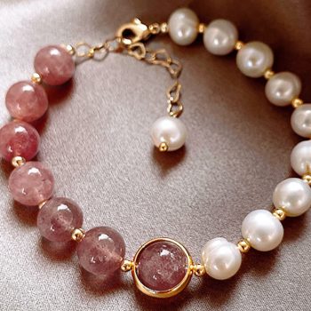 Victoria’s Vogue Strawberry crystals stone bracelet simple delicate daily jewelry accessories gold-plated beaded bracelet for women 2020 new gift