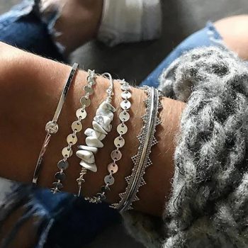 Victoria’s Vogue Vintage Geometric Crown Sequins White Stone Crystal Fashion Bracelets For Women Boho Multiple Layers Bracelet Set Jewelry