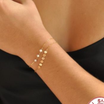 Victoria’s Vogue 925 Sterling Silver Gold Wafer String Bracelets Simple Personality Design Cute Discs Bracelet For Women Girls Fine Jewelry