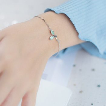 Victoria’s Vogue New Fashion Jewelry Beautiful 925 Sterling Silver Bracelets Green leaves Simple Personality Sweet Bracelets
