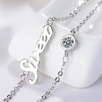 Victoria’s Vogue New Fashion Creative 925 Sterling Silver Jewelry Sweet English Letters Flash Round Crystal Double Line Women Bracelets
