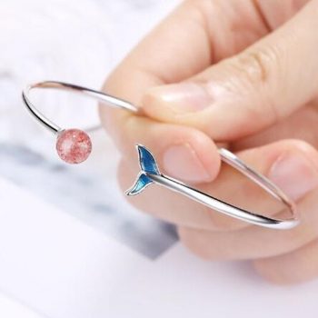 Victoria’s Vogue New Personality Fishtail Natural Strawberry Crystal Bracelets Cute Animal 925 Sterling Silver Fashion Jewelry Fish Bangles