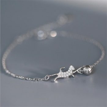 Victoria’s Vogue New Cute Flash Crystal Cat Playing Ball Round Bell 925 Sterling Silver Jewelry Personality Luxury Women Gift Bracelets