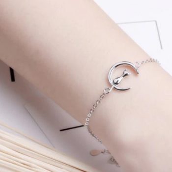 Victoria’s Vogue Popular Female Simple Cute Animal Fashion 925 Sterling Silver Jewelry Beautiful Moon Cat Fashion Bracelets