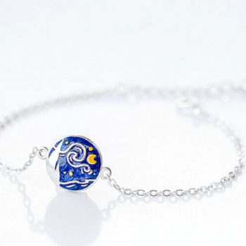 Victoria’s Vogue New Fashion Creative Van Gogh Starry Women Beautiful 925 Sterling Silver Jewelry Temperament Epoxy Blue Bracelets