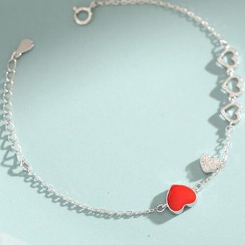 Victoria’s Vogue New Luxury Remote Love Personality 925 Sterling Silver Jewelry Valentine’s Day Gift Red Heart Crystal Women Bracelets