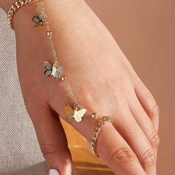 victoria’s vogue Gold Silver Color Butterfly Ring Bracelet for Women Wrist Chain Jewelry Fashion Hand Back Bangles Female Arm Link Ornament