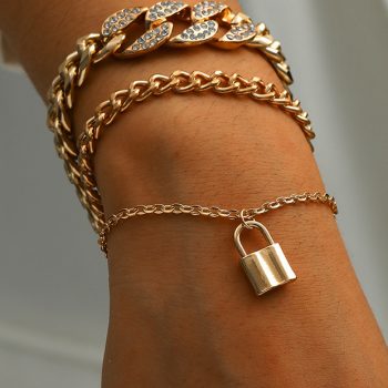 victoria’s vogue Multi Layered Chunky Thick Rhinestone Curb Miami Curb Bracelets Bangles Padlock Pendant Wrist Chain Bracelet Jewelry