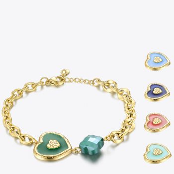 Voctoria’s Vogue Colorful Heart Bracelet Femme Gold Color Geometric Stainless Steel Hollow Bracelets For Women Fashion Jewelry B192066