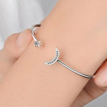 Victoria’s Vogue New Creative Beautiful Star And Moon 925 Sterling Silver Jewelry Bracelets Personality Temperament Crystal Women Bangles