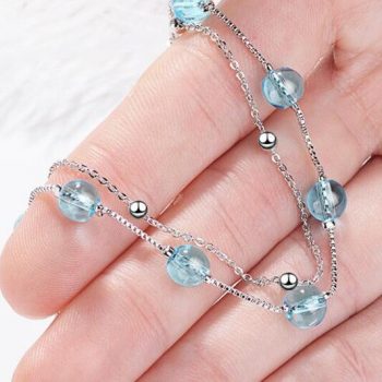 Victoria’s Vogue New Fashion Double Layer Blue Crystal 925 Sterling Silver Jewelry Personality Sweet Transfer Beads Bracelets