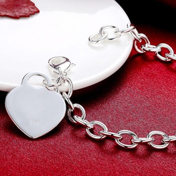 Victoria’s Vogue 925 Sterling Silver Heart Tag Pendant Bracelet For Woman Charm Wedding Engagement Fashion Party Jewelry