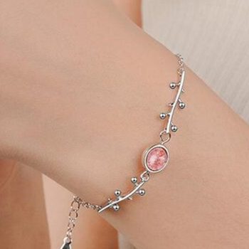 Victoria’s Vogue New Creative Transfer Beads Natural Strawberry Crystal 925 Sterling Silver Jewelry Branches Fresh Plant Women Bracelets