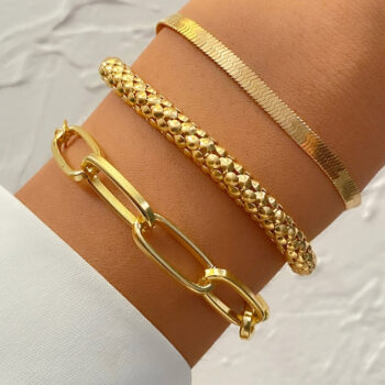 victoria’s vogue Punk Curb Cuban Chain Bracelets Set for Women Mens Boho Thick Gold Color Charm Bracelets Bangles Fashion Jewelry