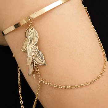 victoria’s vogue Charm Leaves Tassel Pendant Couple Bracelets Bangles Bohemian Summer Upper Arm Cuff Bracelets for Women Jewelry Gift