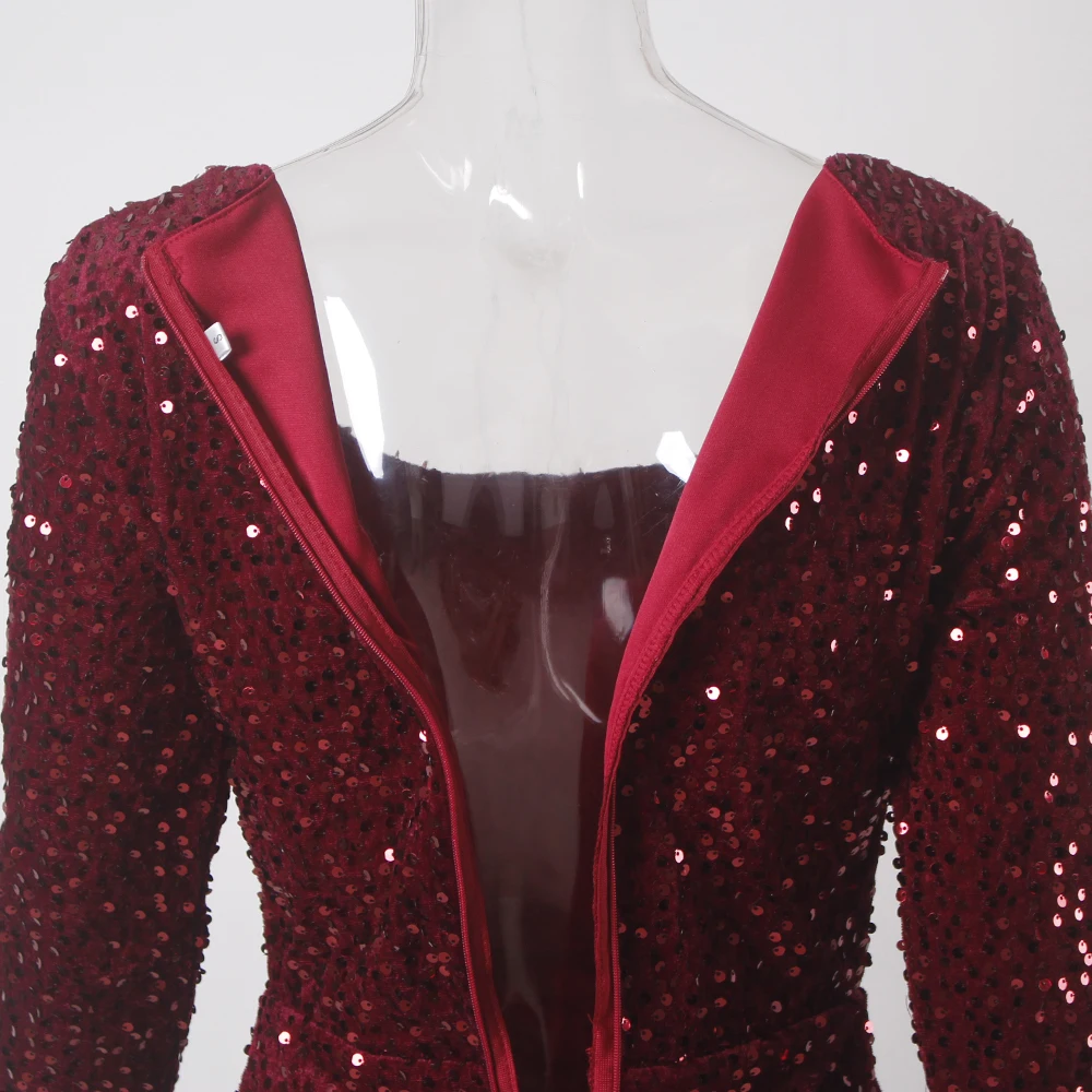 victoria’svogue 2021 Burgundy Shiny Sequined Velvet Long Party Dress Full Sleeved Square Neck Mermaid Evening Party Dress