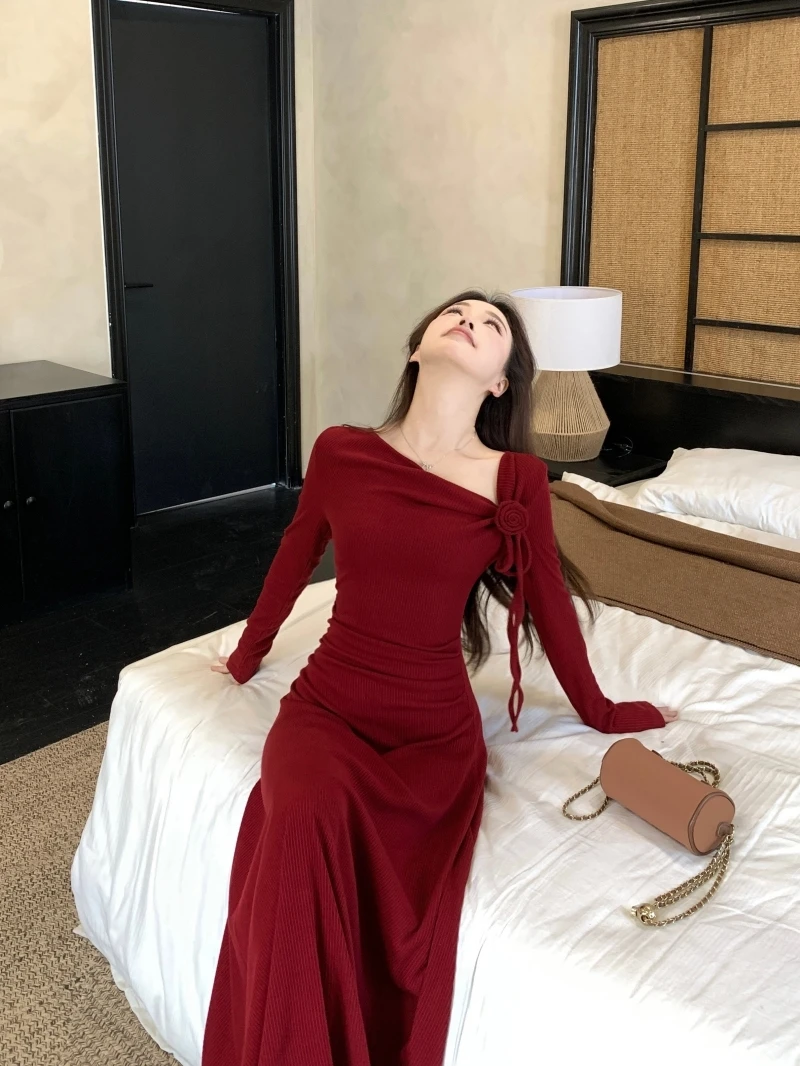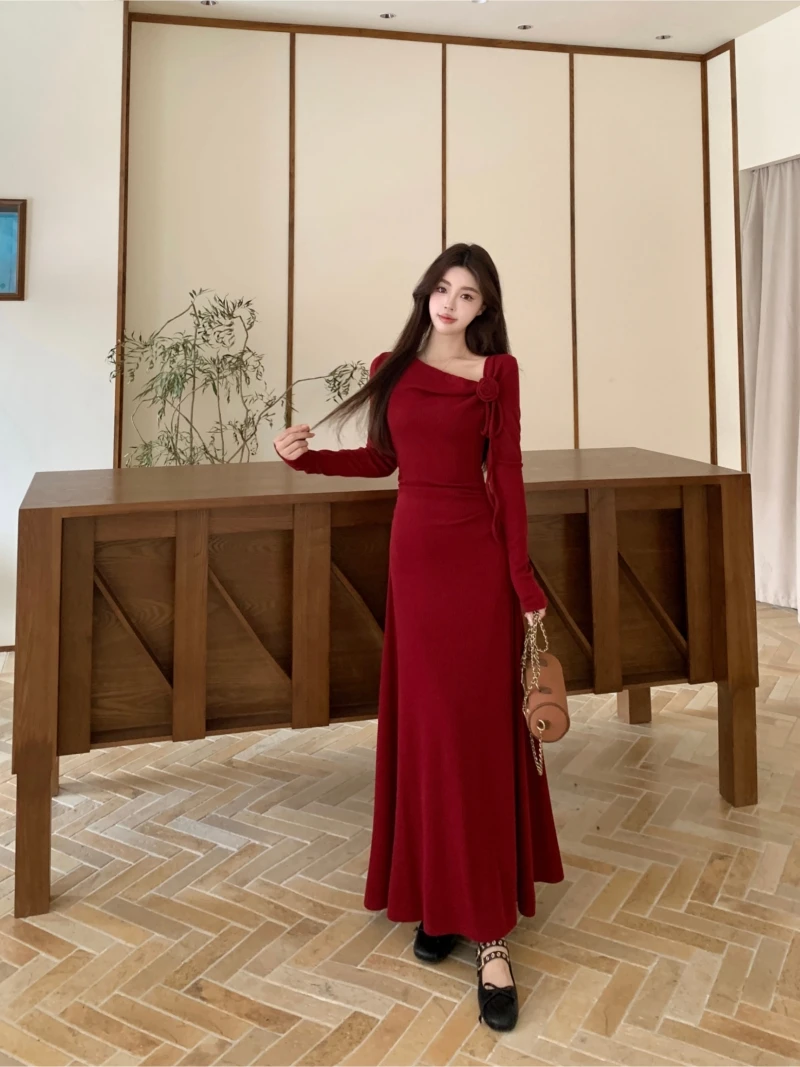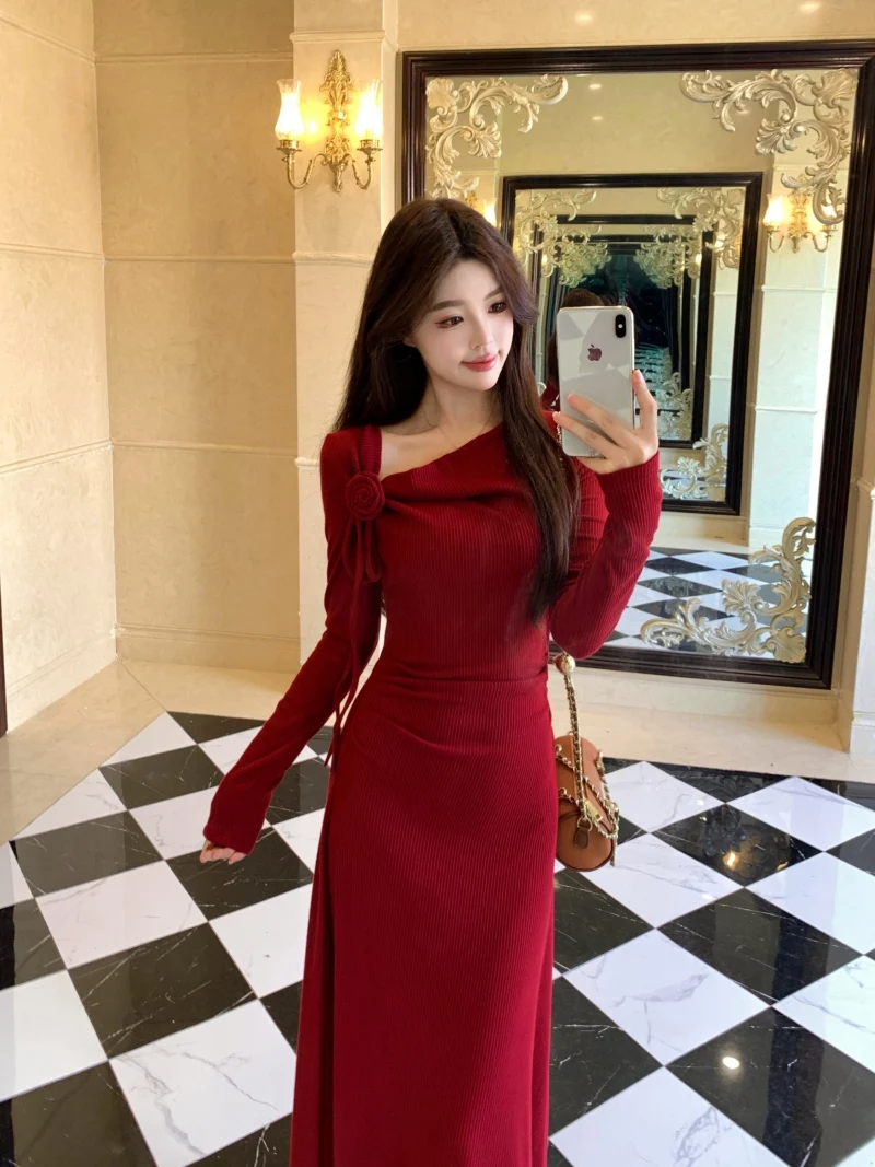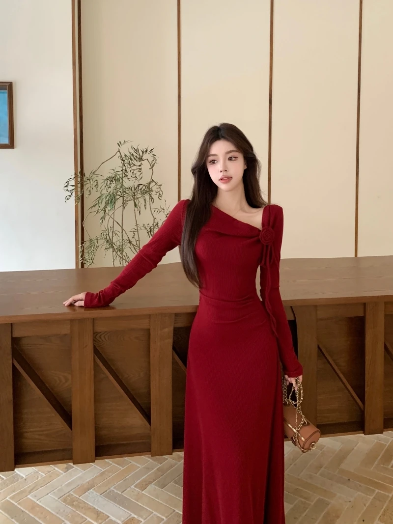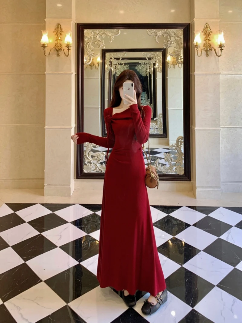 Victoria’s Vogue casual Elegant long sleeve Knit floral Spliced autumn Dresses Evening High Street Plus Size women clothing