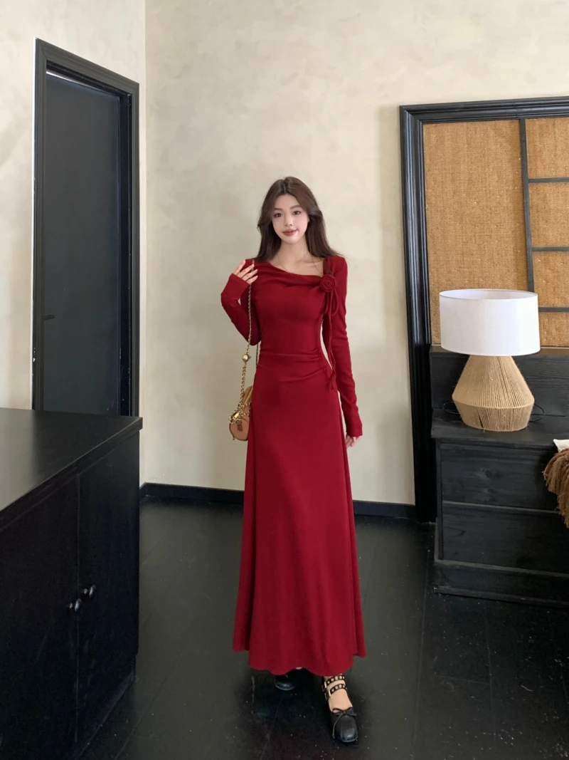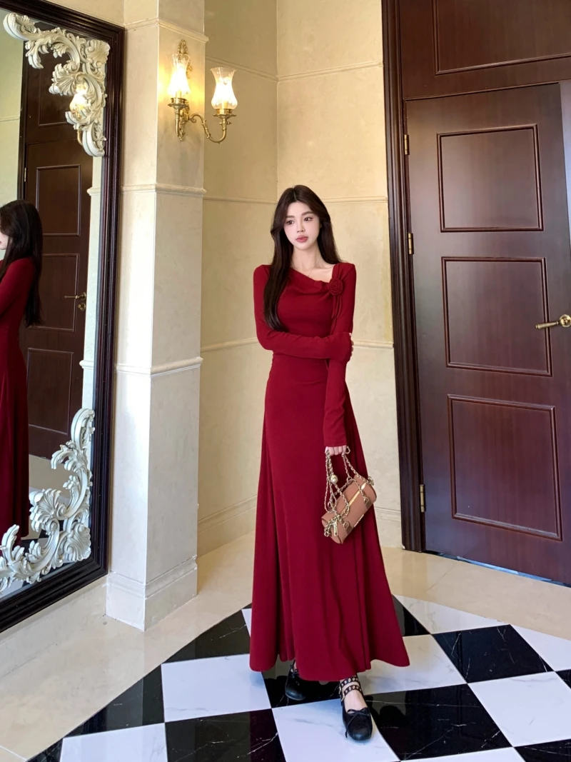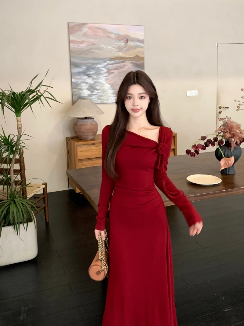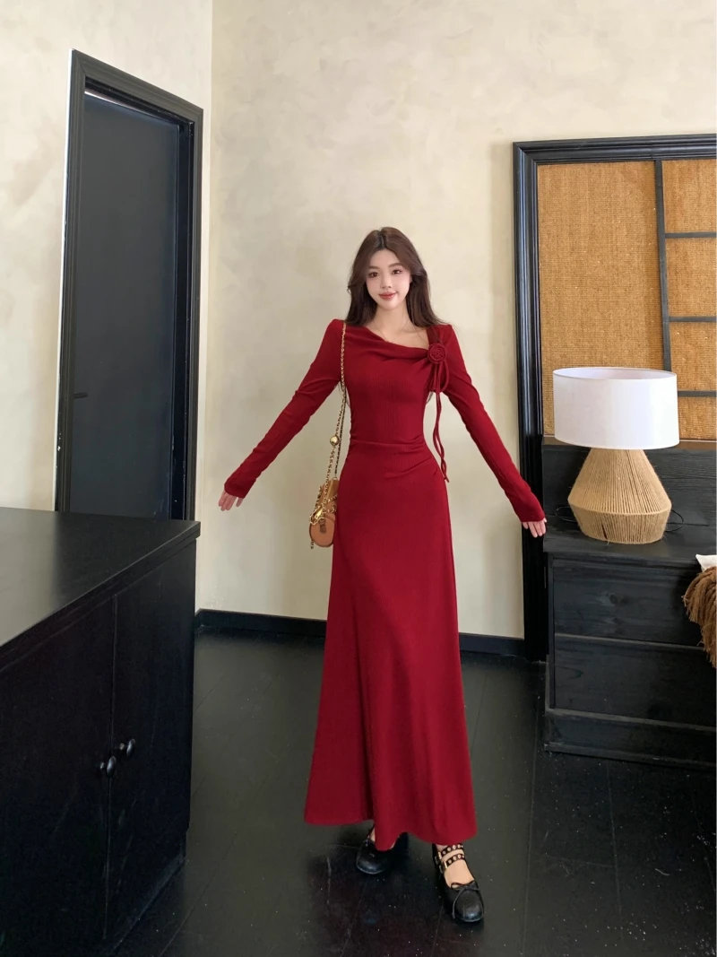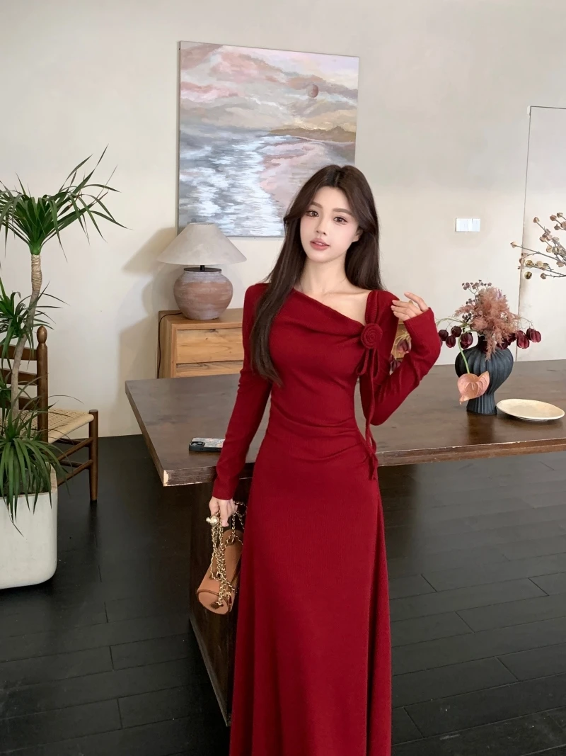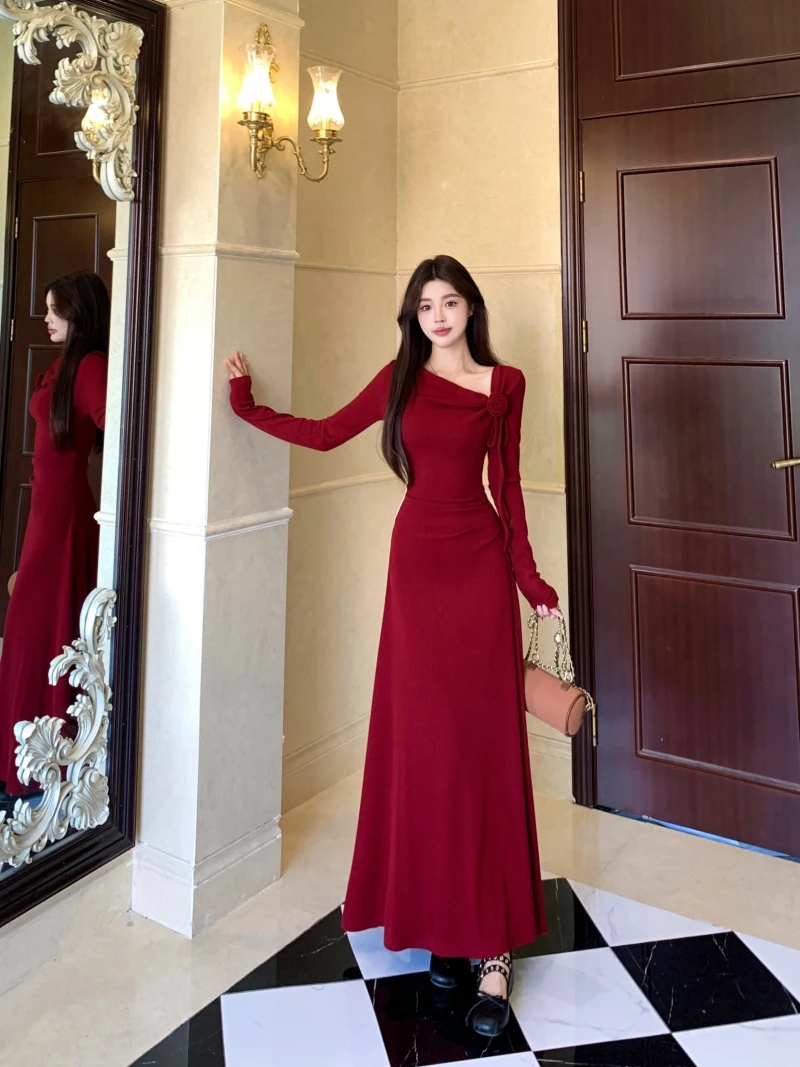 Victoria’s Vogue casual Elegant long sleeve Knit floral Spliced autumn Dresses Evening High Street Plus Size women clothing