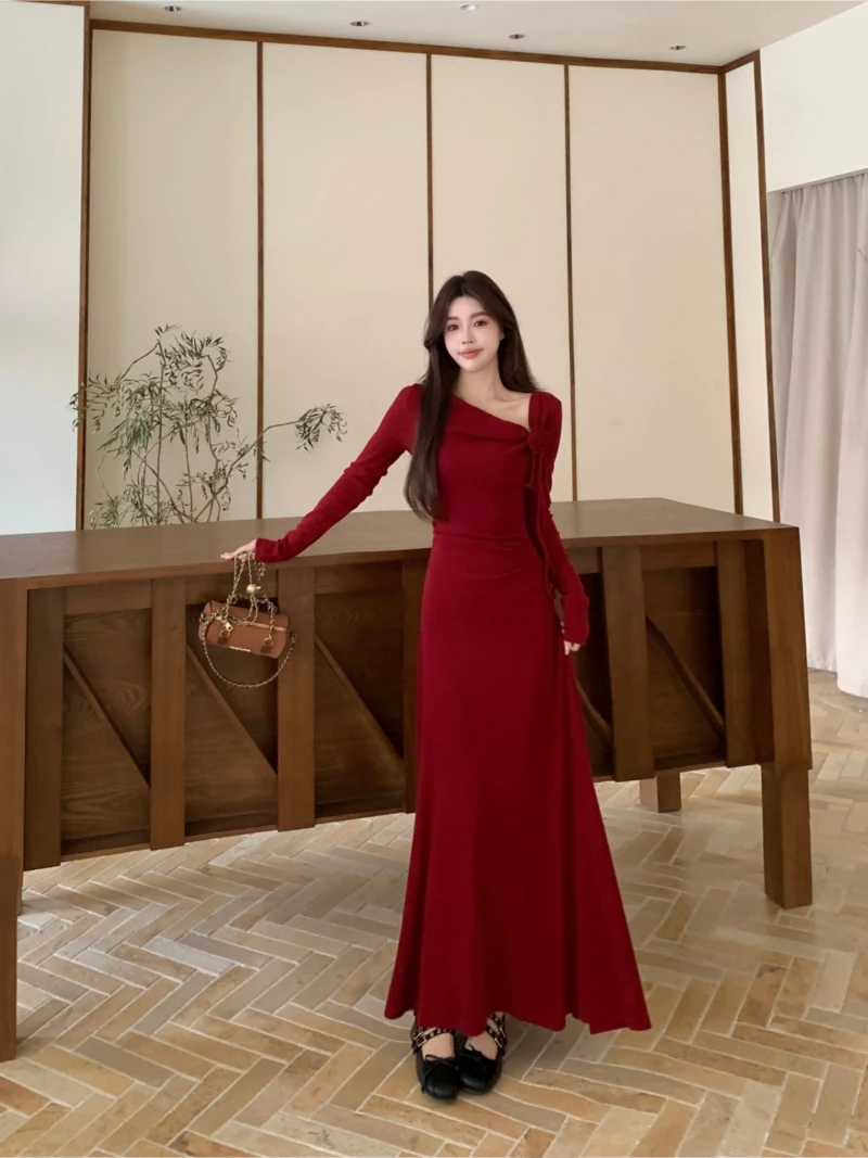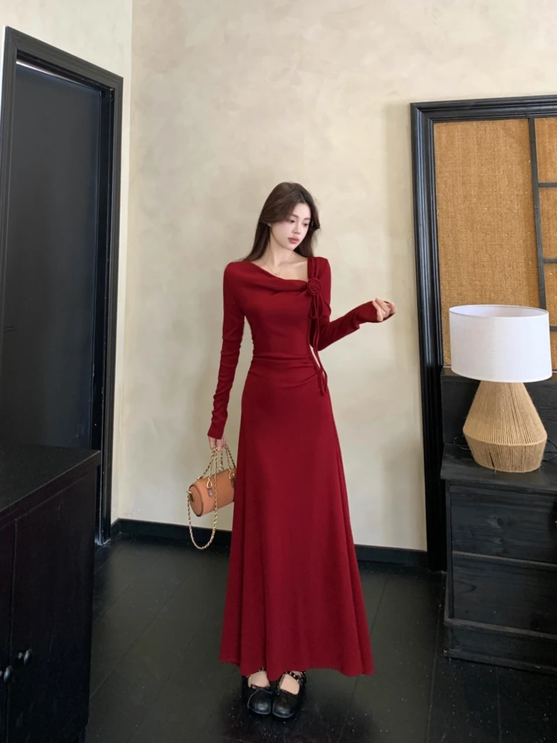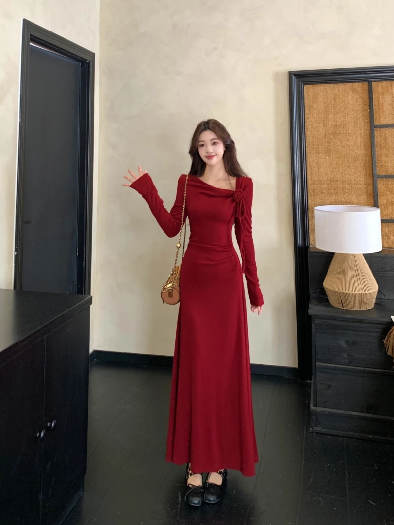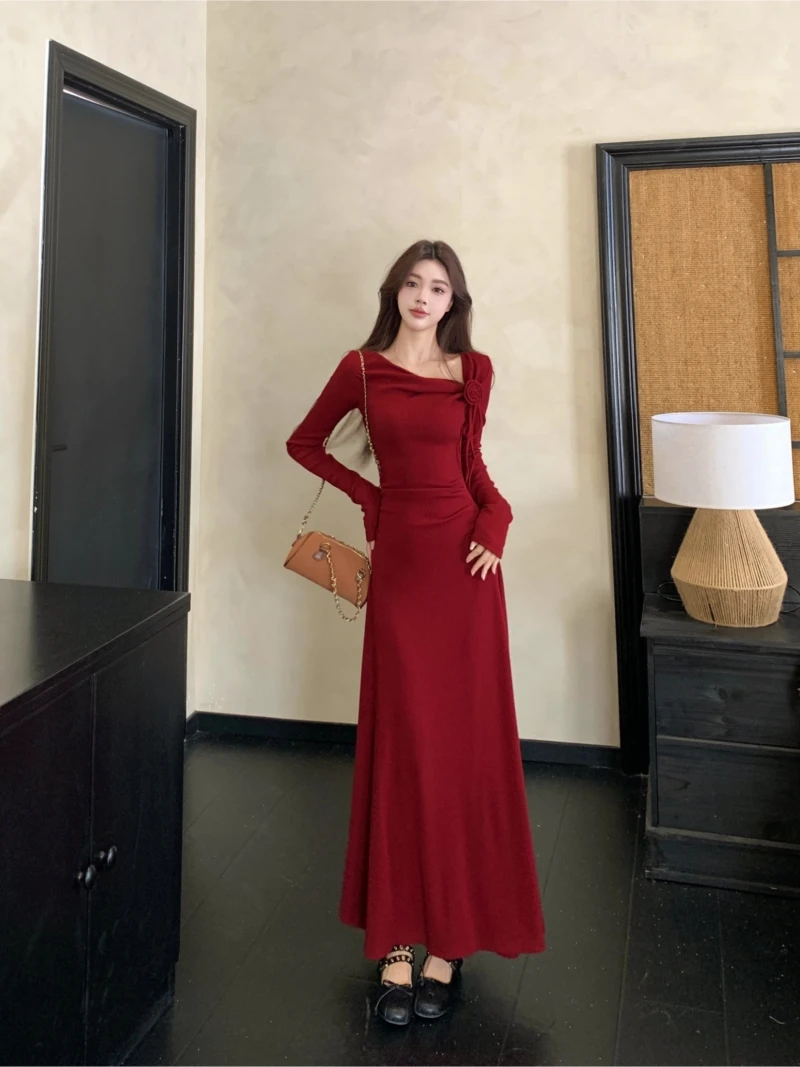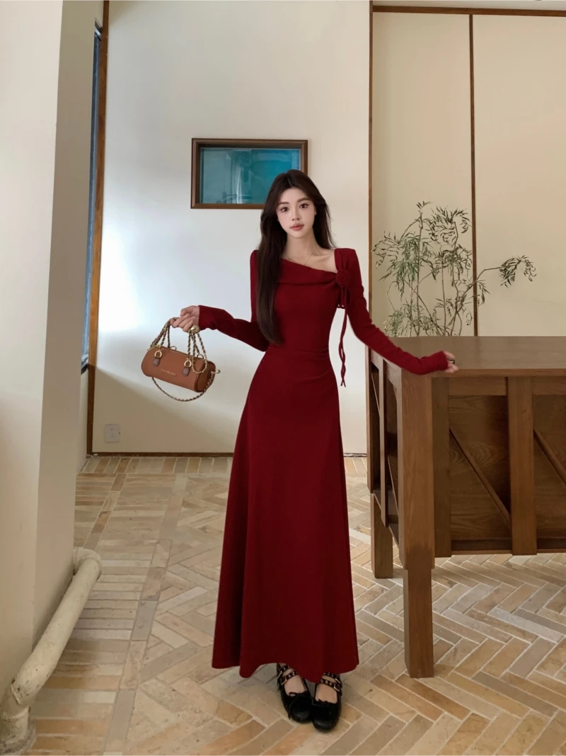 Victoria’s Vogue casual Elegant long sleeve Knit floral Spliced autumn Dresses Evening High Street Plus Size women clothing
