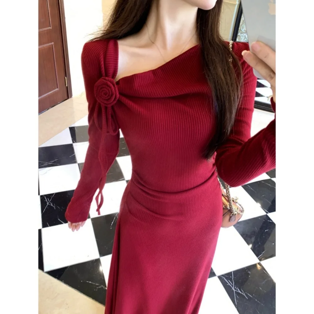Victoria’s Vogue casual Elegant long sleeve Knit floral Spliced autumn Dresses Evening High Street Plus Size women clothing