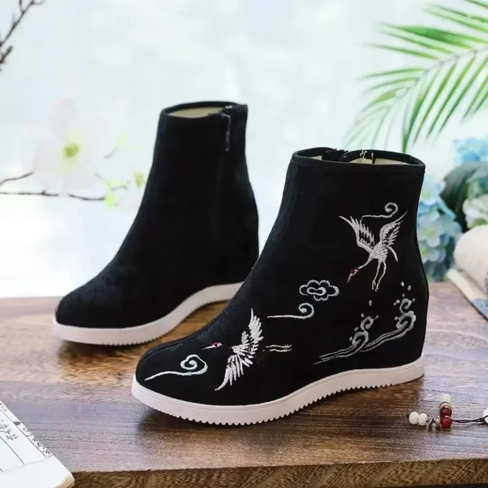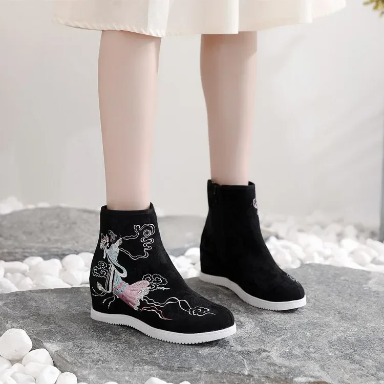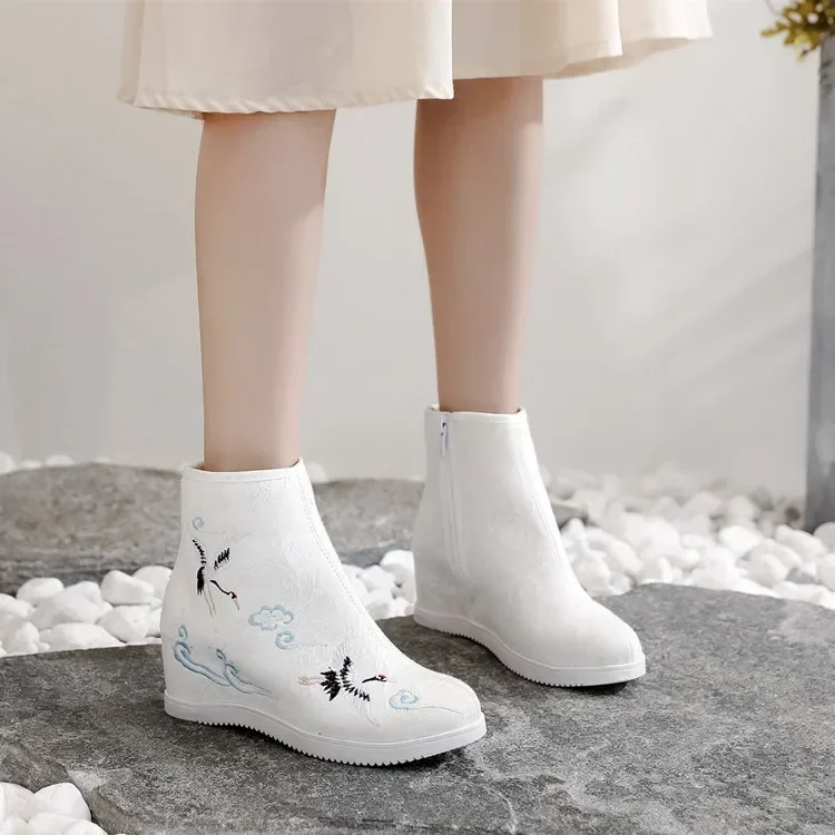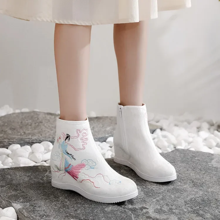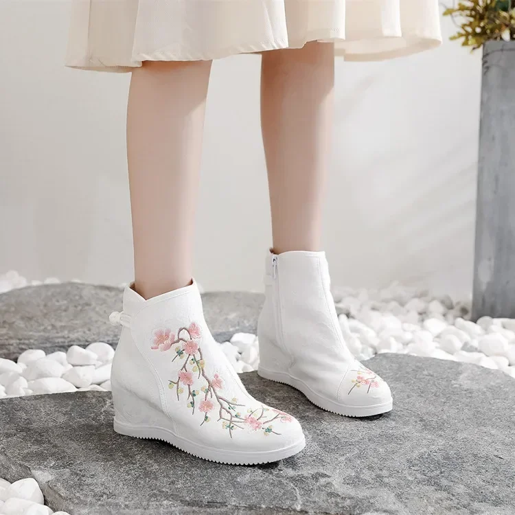 Victoria’s Vogue Casual Woman Shoes Vintage Canvas Lady Embroidered Zipper Shoes Chinese Style Wedge Platform Shoes Hanfu Ancient Boots Women