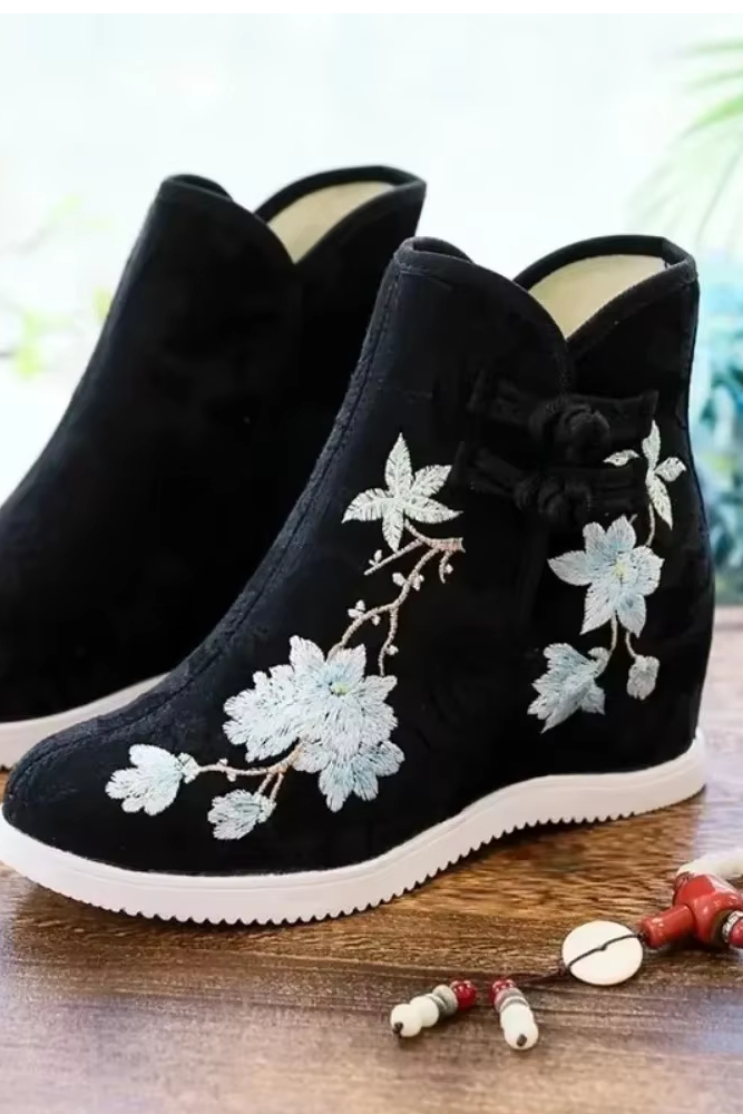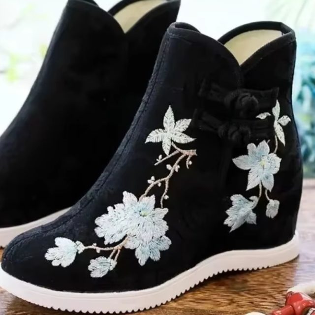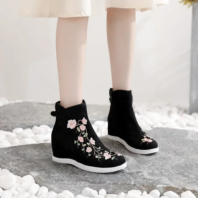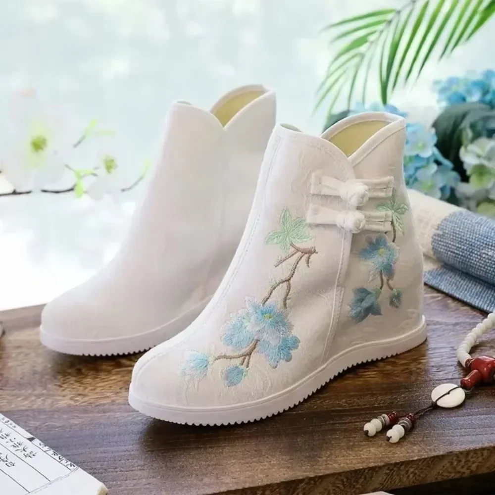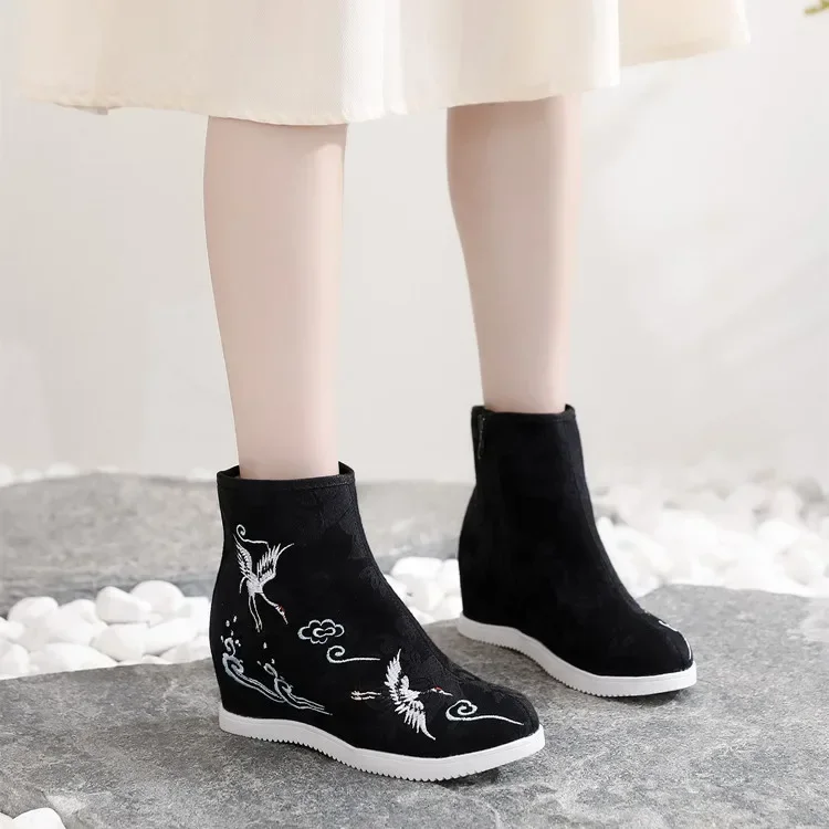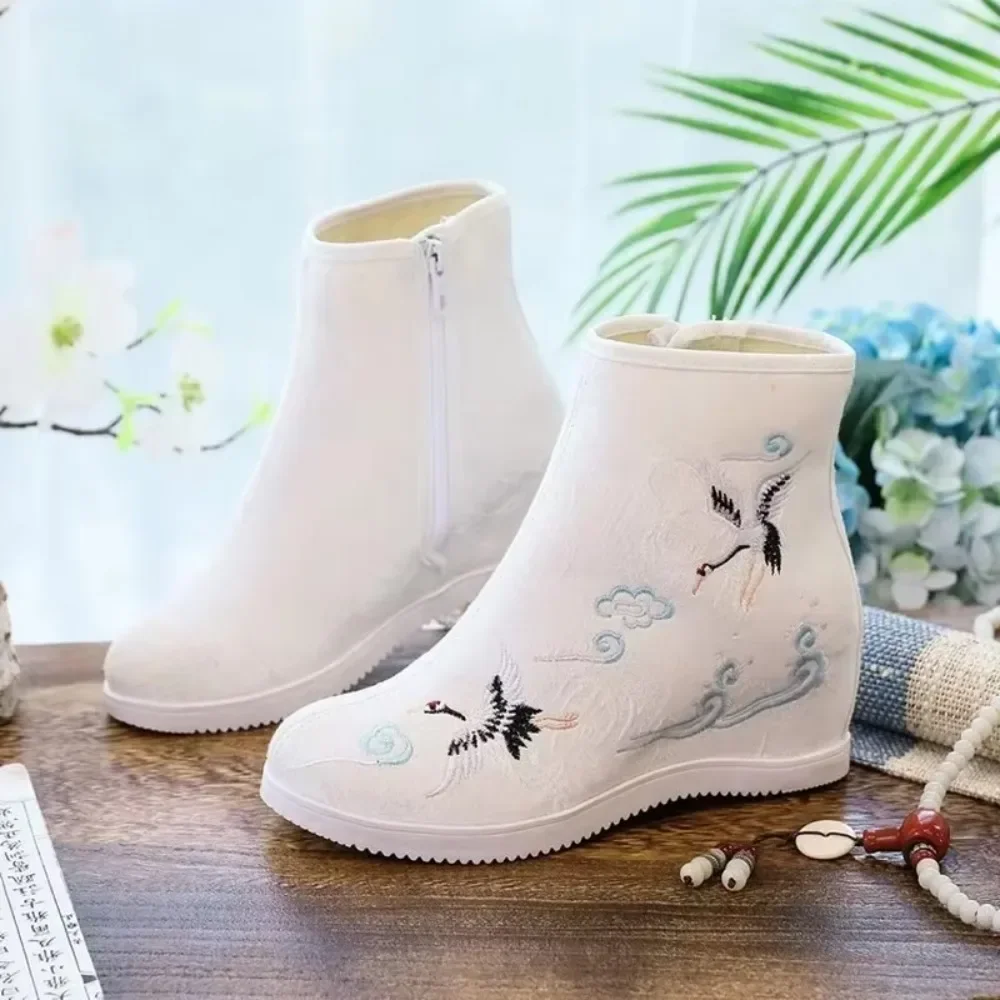 Victoria’s Vogue Casual Woman Shoes Vintage Canvas Lady Embroidered Zipper Shoes Chinese Style Wedge Platform Shoes Hanfu Ancient Boots Women