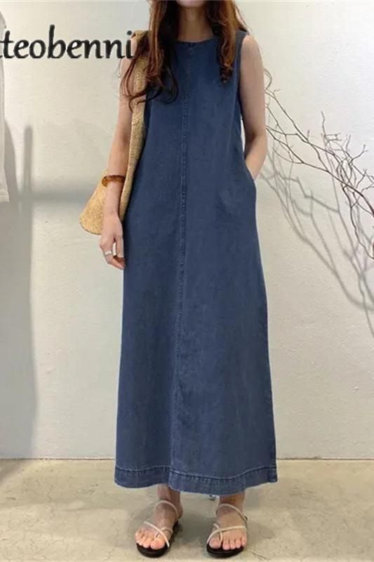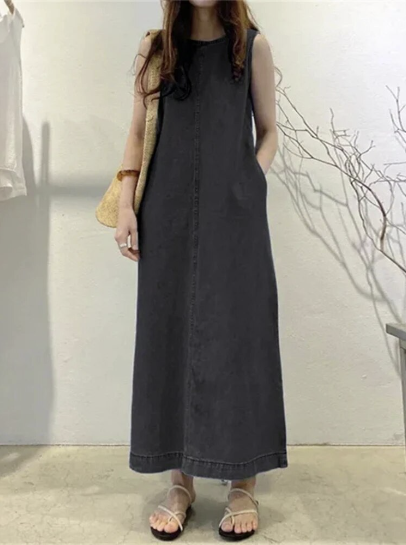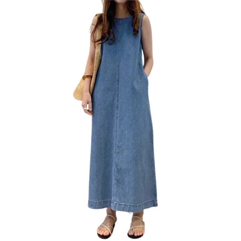 Step into the summer with confidence in our Chic Sleeveless Denim Maxi Dress, a blend of simplicity and elegance designed for the modern woman. Perfect for those who appreciate a minimalist approach to style, this dress embodies effortless chic with its loose silhouette and classic crew neck. Whether you’re commuting to the office or stepping out for a casual brunch, this pullover robe offers an elegant solution for any occasion.