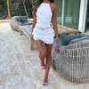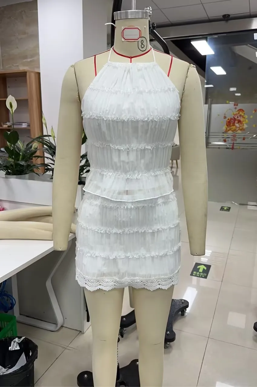 Victoria’s Vogue Women 2Pcs Smocked Outfits Set Sleeveless Lace-up Halter neck Crop Camis Vest+High Waist Floral Lace Hem Pencil Skirt