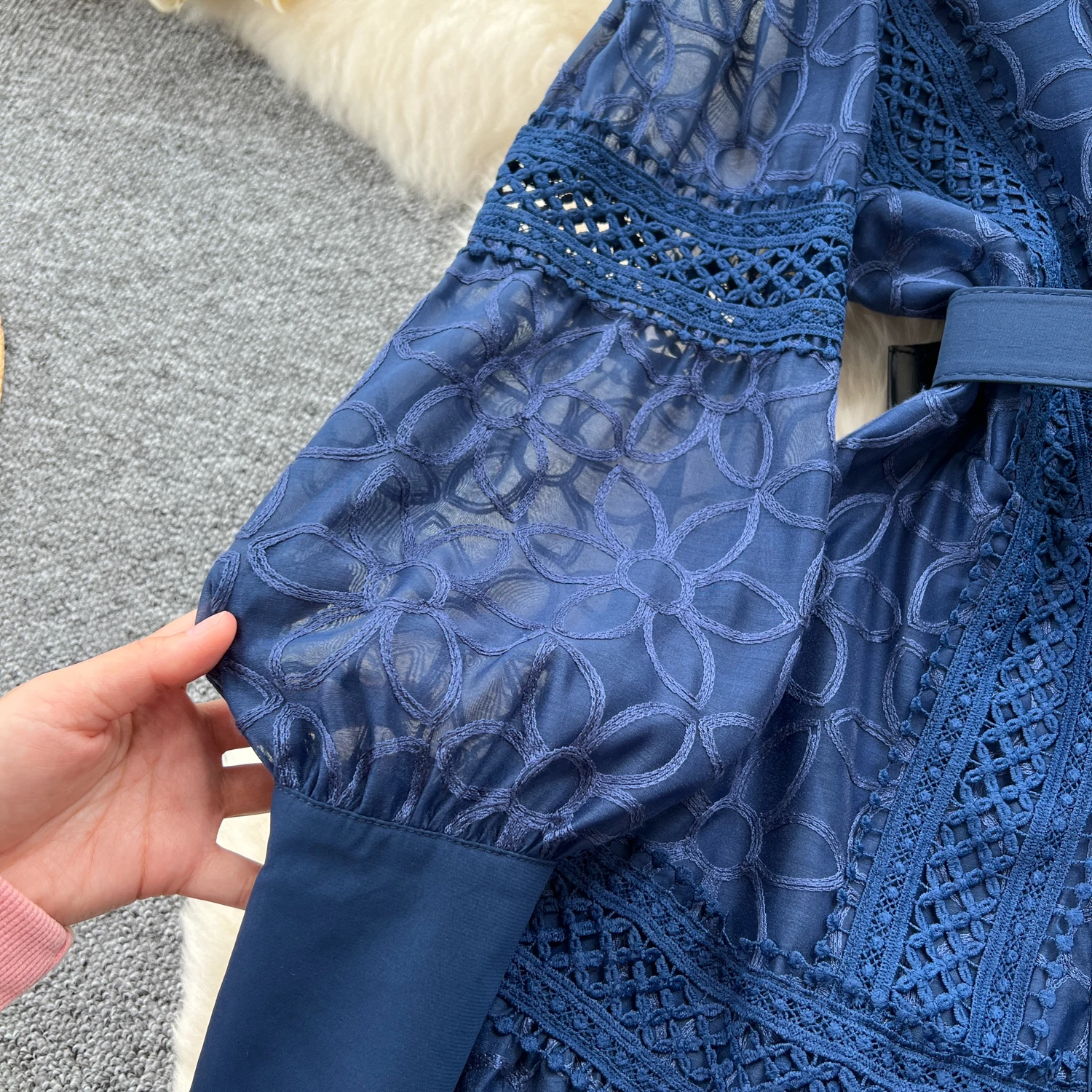 Victoria’s Vogue Court Sle Long Dr Women Winter Vintage Heavy Embroidery Lantern Sve Waist Cinch Single Button Flared A-Line Dr