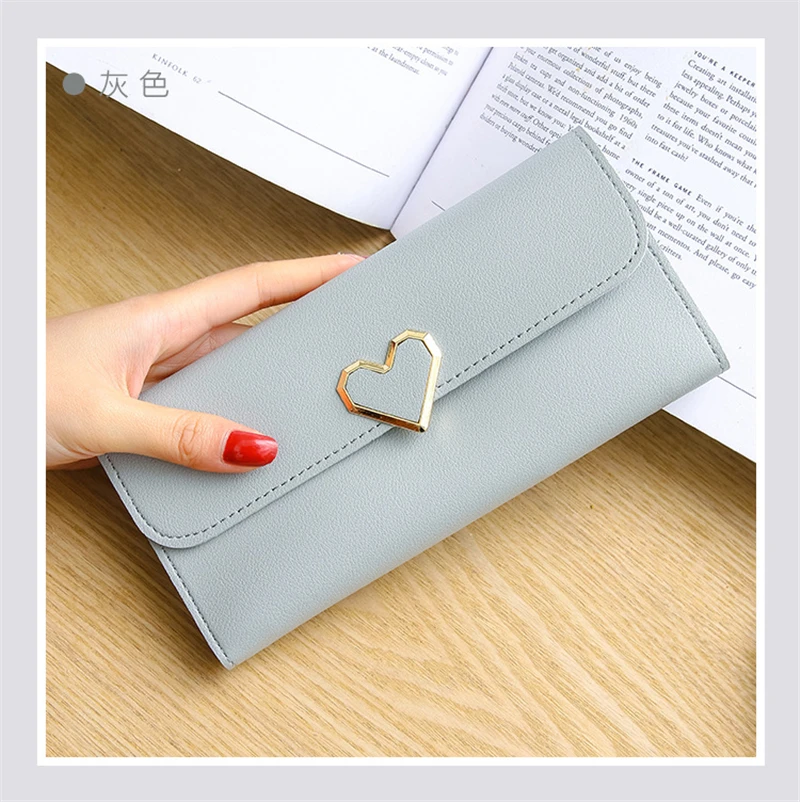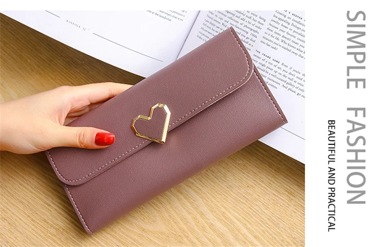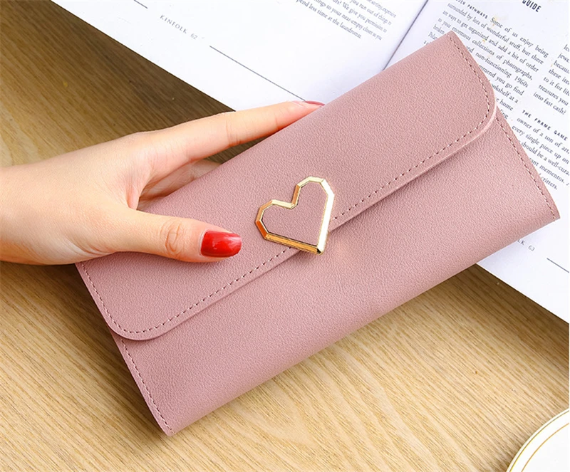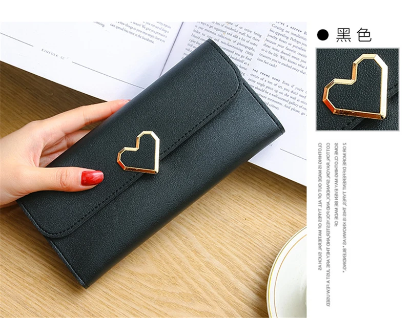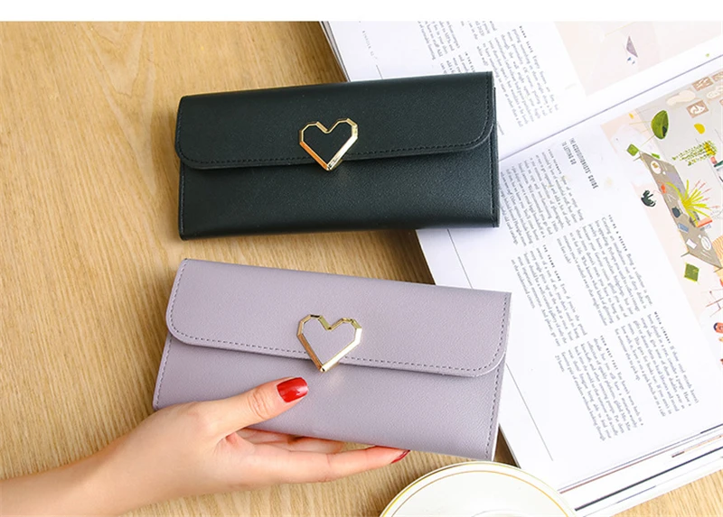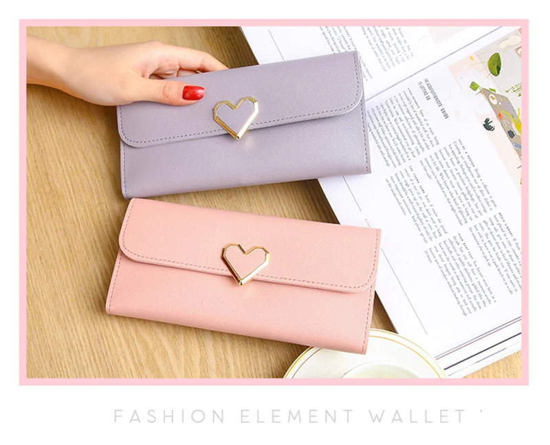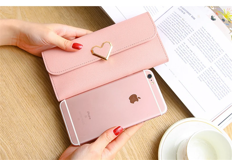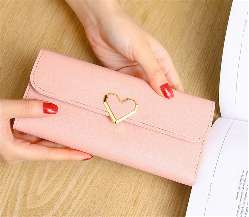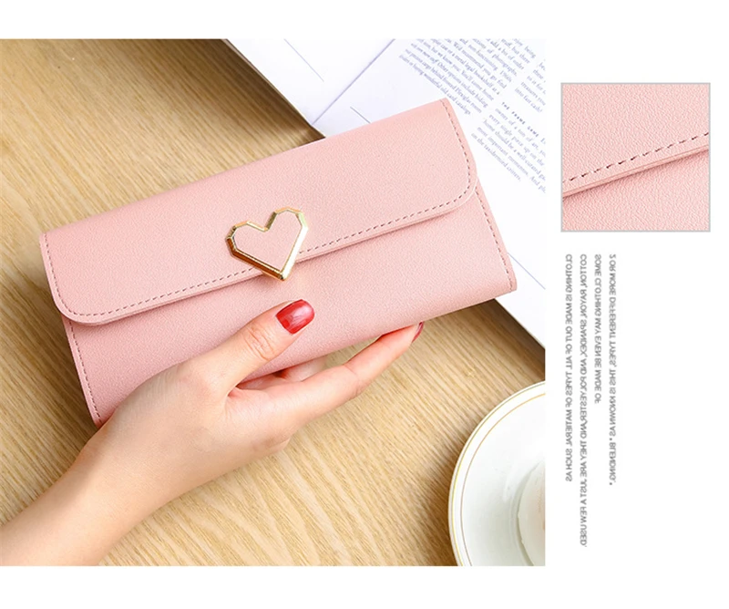 victoria’svogue Cute PU Leather Heart Shaped Decoration Long Purse Buckle Clutch Women’S Wallet